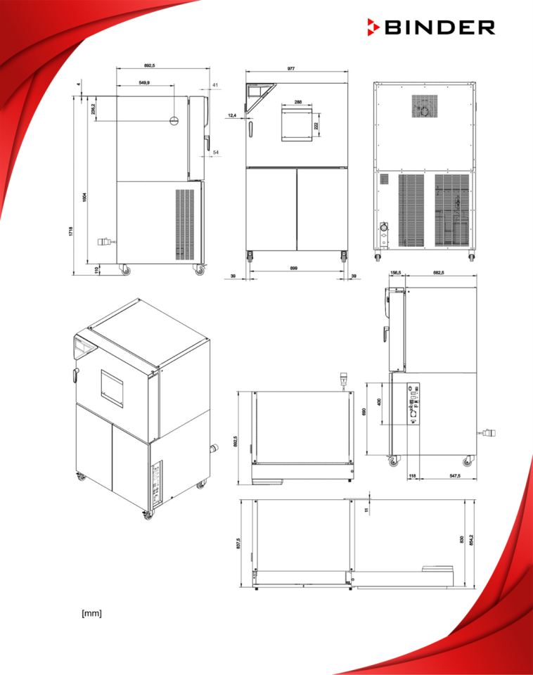 Cihazın arka kısmındaki soğutma makinesi bağlantıları ve geri hava çıkışı, BINDER MK 115 Dinamik İklim Kabini’nin güvenli ve stabil bir şekilde çalışmasını sağlar. Ayak yapısı ve hafifliği, cihazın taşınabilirliğini ve yer değiştirilmesini pratik hale getirir. Erişim kapakları ve yerleştirme boşlukları, cihazın bakımını hızlandırırken, ergonomik tasarımı sayesinde uzun süreli kullanımlarda yüksek konfor sağlar. Bu tasarım, BINDER MK 115 Dinamik İklim Kabini’nin her tür ortamda verimli kullanım için ideal bir çözüm olmasını sağlar.