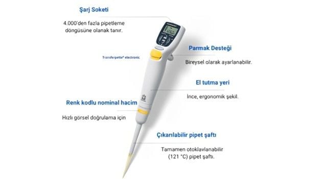 Brand Transferpette Elektronik Ayarlı Otomatik Pipet 0,5-10, laboratuvarlarda hem hassasiyet hem de konfor arayanlar için vazgeçilmez bir çözümdür. Ergonomik tasarımıyla uzun süreli kullanımlarda bile yorgunluk yaratmaz, geniş hacim aralığı ile çeşitli uygulamalarda esnek bir kullanım sunar. Kullanıcı dostu LCD ekranı ve işlevsel tuş yerleşimi, işlemleri hızlandırırken hata riskini en aza indirir. Ayrıca, tek şarjla 4000’den fazla pipetleme döngüsü sunan uzun pil ömrü ve otoklavlanabilir parçalarıyla hijyenik kullanım sağlar. Güvenilir sonuçlar ve kesintisiz çalışma için Brand Transferpette Elektronik, laboratuvarınızın en büyük yardımcısı olacak!