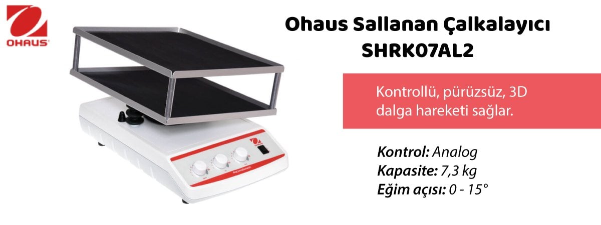 - Ohaus Sallanan Çalkalayıcı Analog SHRK07AL2; kan örneklerini karıştırma, DNA ekstraksiyonları, blot teknikleri, boyama/destaining jeller, hibridizasyonlar için uygundur.