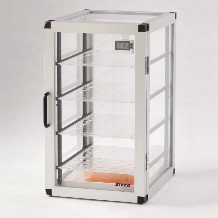 SICCO SUPER-STAR Desikatör, laboratuvarlarda kullanılan ve cam ya da alüminyumdan yapılan bir kaba verilen isimdir. İncelenmek istenen maddenin, kurumasını ve nemden korunmasını sağlar. Yani maddenin kuru halde olmasını sağlar. Nem alıcı olan bu kap, normal ve vakumlu olmak üzere iki çeşittir. Akrilik cam panelli alüminyum çerçeve, polikarbonattan yapılmış dört raf, tepsi, higrometre, nem ölçer, silindir kilit ve gaz doldurmak için iki hızlı bağlantılı hortum (5 m) dahil, 26 adede kadar rafla kullanılabilir, istiflenebilir. Gaz dolumu için SICCO Desikatörleri, zehirli kimyasalların güvenli ve güvenli bir şekilde depolanması için ideal koşullar sağlar. Kapı sıkıca kapanır kapanmaz nitrojen gibi nadir veya inert bir gaz verilebilir. Ortam havasıyla karşılaştırıldığında inert gaz, depolanan maddelerle reaksiyona girmez.